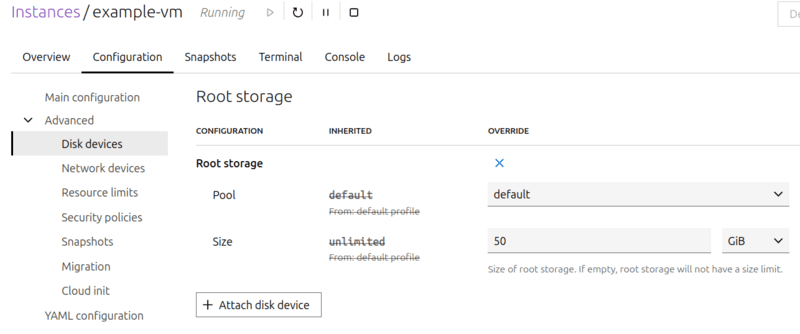 1. Depending on the size of the OVA, you may want to retroactively add more storage to the VM. Within the Incus WebUI, additional disk storage space can be allocated if needed.