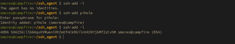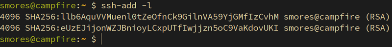 user. Running the command ssh-add -l once again, we can see