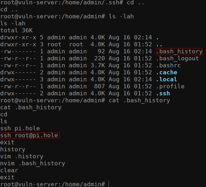 checking the /home/admin/.bash_history file. Since we’re