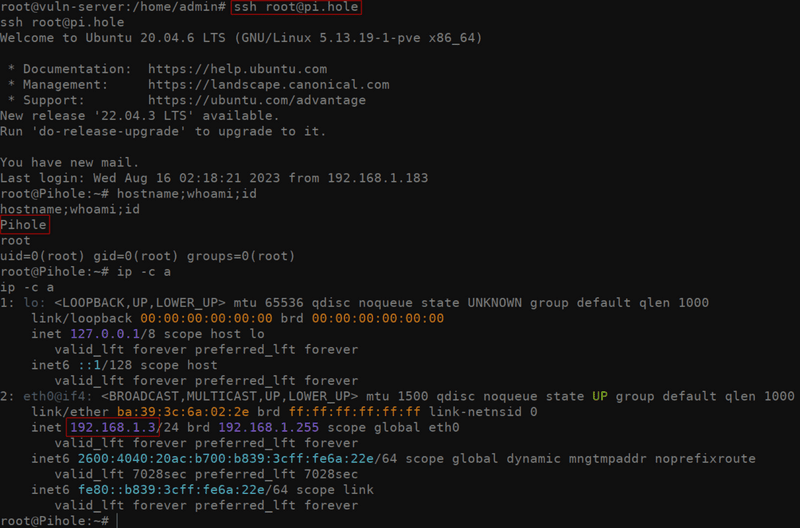 ssh -i /path/to/key/file [email protected]then entering the (hopefully unique) password to the key file, she can simply typessh root@piholeand the connection will be established.