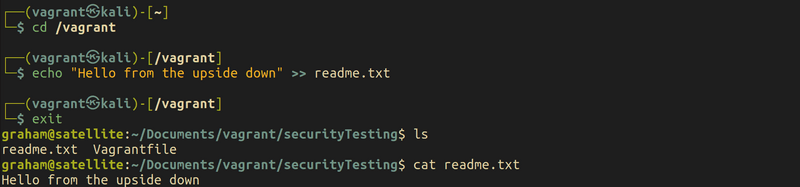 me,~/Documents/vagrant/securityTesting). To access files in our